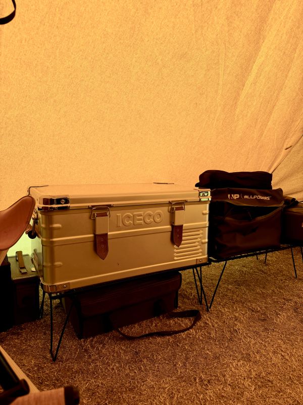 フォールナットのガード、真鍮のプレート、レザーが装飾されてされていますが、シンプルにデザインが纏まっていて気に入っています。 蓋に付いている取っ手が車への積載の時にとても便利です。