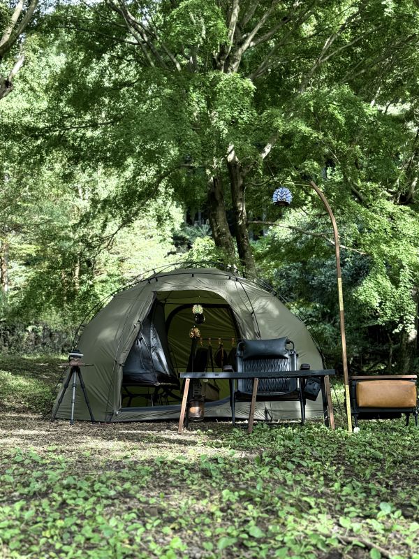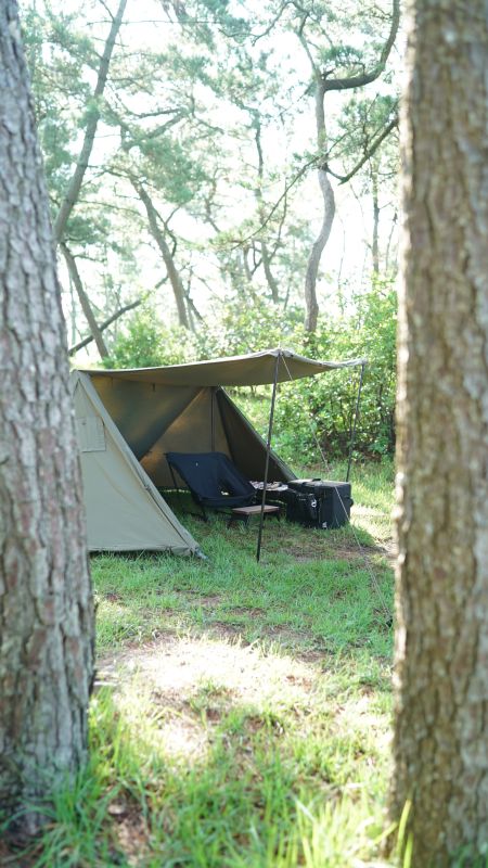 無骨なデザインに惹かれて購入しました。購入して3年ほど使用していますが、ソロキャンプの時はほとんどソロベースEXを使います。 素材はTC生地、設営も簡単で年中使えるのも気に入っています。